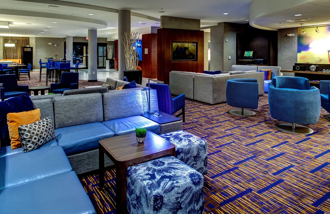 El Courtyard Atlanta Airport West Hotel estiloso ofrece 128 habitaciones individuales, así como un cajero automático, una tienda de regalos y un puesto de periódicos.